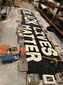 On my second day in person, a curator from Iowa State University traveled down to Cedar Rapids to help us restore a collection item. It was a piece that was donated recently and was related to the Black Lives Matter movement. It had been improperly stored by the people who had donated it to use and was in desperate need of restoration for it to be stored in the museum long term. This has been a project that has been in the works for a while now, and it was ultimately decided that we need a professional curator’s advice on how to go about this process. The process was prolonged as we had to slowly stretch out the fabric to unwrinkle it and use paintbrushes to fix and clean up smaller details. Between the 5 of us, it took most of the day and is still far from finished as it will be a prolonged process over the next few months. It was fascinating to talk and learn about all the fine details of conservation. Although it seems obvious, I did not realize how much work went into this field of work. She had talked about how to even get the degree. It was a requirement to take chemistry to properly understand how different materials react to others. There were just so many little things that I would not have even thought of, like using the correct type of paper, brushes, and even water. This very tedious process was all worth it, though, to realize that this is an item of history that needs to be properly cared for so it may be appreciated by future historians and museum-goers.