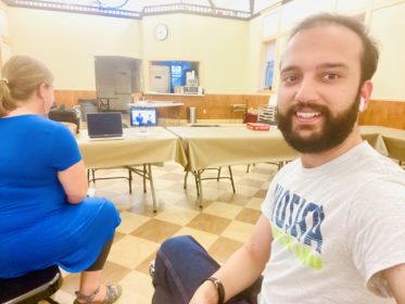 I love being an intern at the Fourth because of the array of different roles and novel experiences I have. We planned on our weekly cook, out-but it had started pouring down very hard. Therefore, along with the staff, we improvised an indoor setup. As Rev Katie put it, this is our first “televangelist” moment together- It was fun to be on the live show- as I may call it.