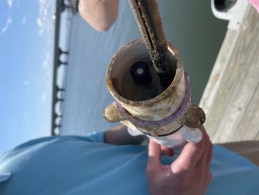 On Friday, we retrieved the sensor! It was covered in sludge and baby barnacles. We were all very excited to see if the sensor had been successful or not, so it was very disappointing when we returned to the lab and there was no recorded data. Somehow a wire got loose and disconnected and unfortunately, the first run was a failure. We had hoped to get the dissolved oxygen, temperature, and salinity taken every five minutes for a week. The plan is to work on the sensor more next week and then deploy it for a shorter period of time. Next week, Professor Rhawn Denniston (Cornell College Professor) plans to make visit the lab and meet Professor Tye.