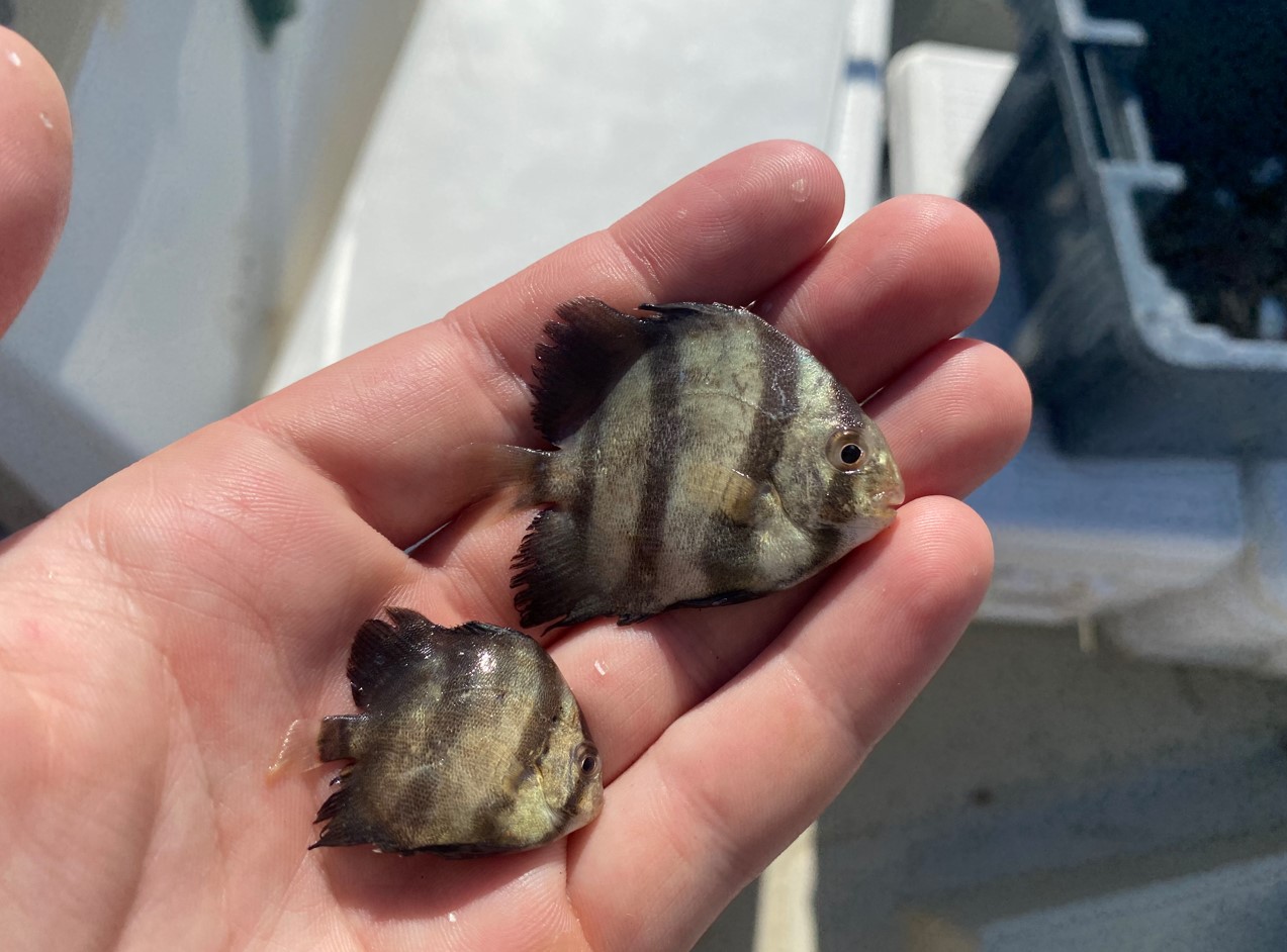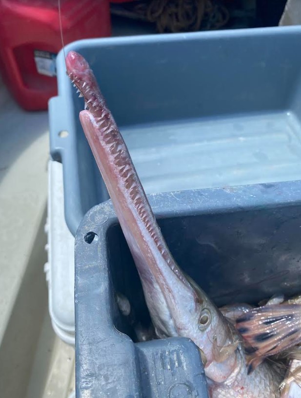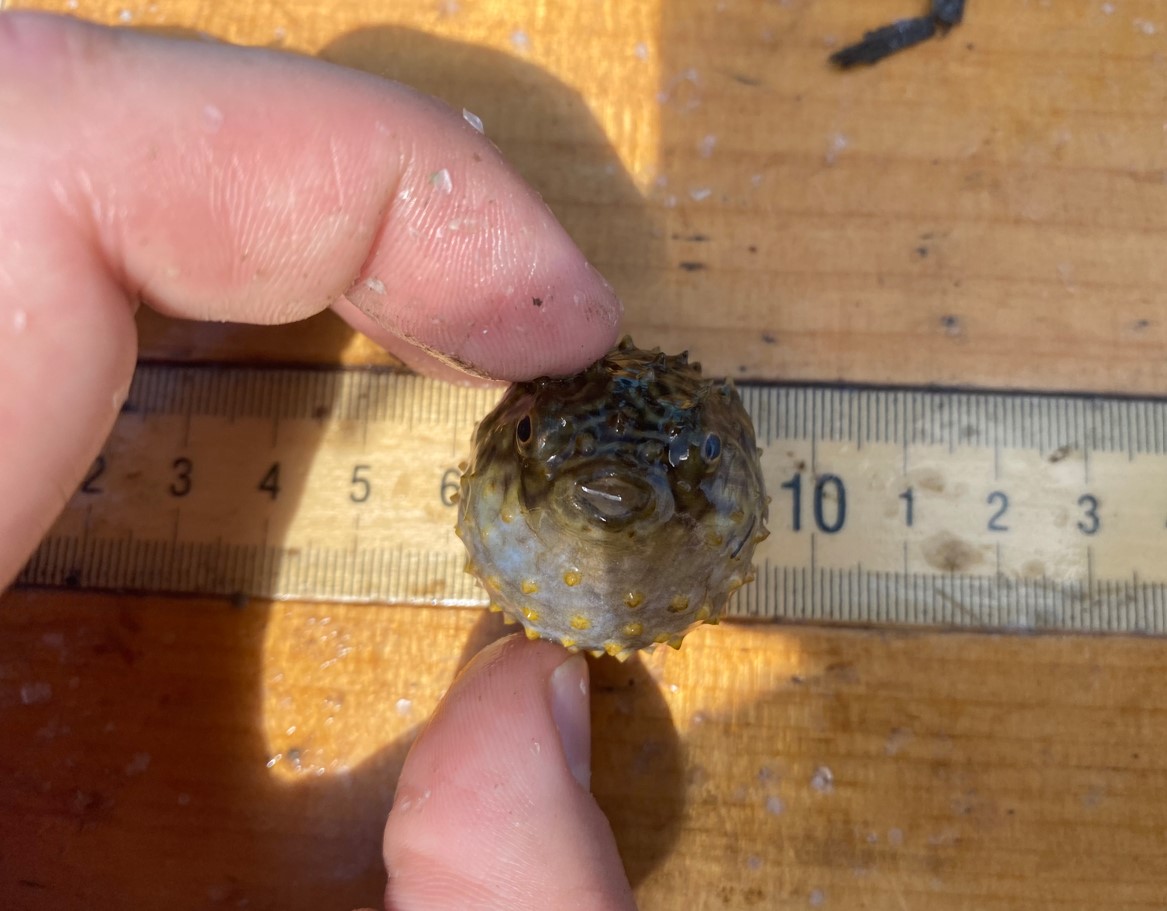Tuesday’s trawls were full of surprises as well. Typically, our nets usually only catch juvenile or smaller species simply because the adults can swim away fast enough, but sometimes we do end up catching some bigger fish (like the sturgeon). That’s why on Tuesday when a handful of longnose gar popped up in the net, it was a pleasant surprise! On top of the gar, we also got to see some hogchokers, pufferfish, spadefish, and some blue catfish to name a few!