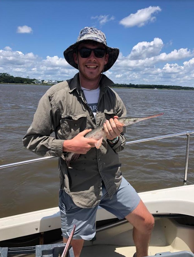 To start off the week, I spent all of Monday and Tuesday out on the water conducting the monthly otter trawls in Winyah Bay. After each trawl, we sorted and measured every individual we caught which was really interesting. On Monday, we ended up catching a sturgeon, which is really rare to see in our trawl nets and even more interesting because they look almost prehistoric! Due to overfishing, habitat loss/degradation, and poaching, sturgeons (Atlantic sturgeon in our case) are currently listed as an endangered species all along the coast. A sturgeon’s lifecycle is unique because it takes them substantially longer to mature and reproduce compared to most fish. They are also poached for their leather-like skin and eggs (used for most caviar), which is why the sturgeon population at the moment is being monitored closely by the DNR. When you pair their lengthy reproduction process with the likes of overfishing and poaching, it is not surprising to see their population diminishing at such an alarming rate. So, to see one of them pop up in our nets was really intriguing, but we released it almost immediately to avoid any unnecessary handling.