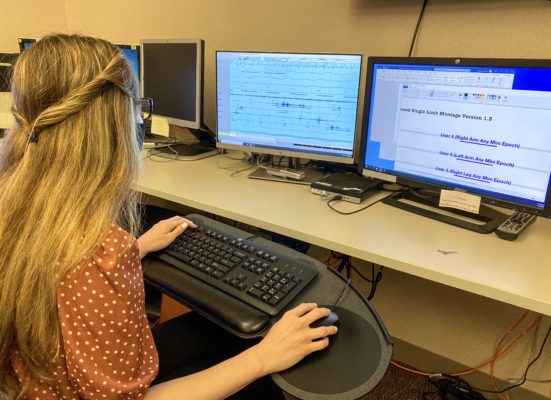 During another meeting, Dr. St. Louis showed us a large black book known as the Atlas of RSWA and Scoring. We went over multiple pages in the book looking more in depth at the contents of a polysomnogram. Of everything we studied, I found the stages of sleep to be the most interesting. N1 (non-rapid-eye movement, stage 1) sleep is the very first part of sleep. It is usually very light sleep where someone could be awoken by the slightest environment change. Small and quick Alpha waves are usually seen in this stage. As you fall deeper into sleep, you reach N2. This stage allows the body’s core temperature to fall a few degrees, autonomic functions begin to slow down, and your muscles become relaxed. Unlike the other stages, N2 sleep is characteristically identified by K-complexes and sleep spindles. After N2 sleep comes… N3 sleep! The N3 stage can be considered deep sleep. Delta waves, which are larger and slower, are active. REM sleep is the fourth stage of sleep. As relevant for the project being conducted this summer, atonia is supposed to occur during REM sleep. For some individuals with sleep disorders like sleep apnea or narcolepsy, RSWA occurs.