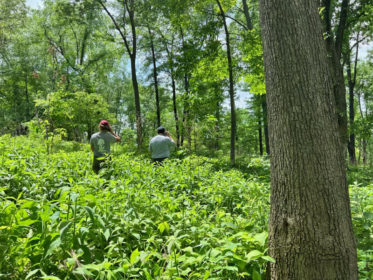 Tracking turtles is more difficult than it sounds. The three-toed box turtles that are a part of the study are tracked using very high frequency (VHF) radio telemetry tags. Each of the turtles have their own unique radio frequency that sends signals back to a receiver. The receiver then converts this signal into a beep. From there, it is similar to a game of hot and cold. If you are facing or moving in the right direction, the signal becomes stronger and the beep becomes louder. Sometimes it is hard to tell what direction a signal is coming from. The key to figuring out what direction a signal is really coming from is to just keep moving.