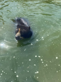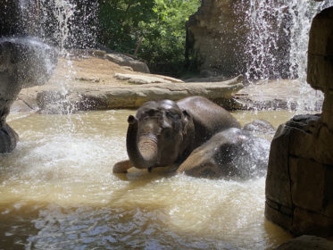 With highs in the upper 90s and several days reaching over 100 degrees Fahrenheit, it was a very warm week here in St. Louis! We spent the majority of the week working around the heat as we collected data for the Saint Louis Box Turtle Project. We started each day of tracking earlier in the morning and made sure to drink plenty of water. One of the other interns brought cooling towels for everyone to use which were a lifesaver after tracking turtles in the heat! The animals in the River’s Edge exhibit had a similar strategy as the zoo’s Asian elephants and Andean bear spent some extra time in the water this week.