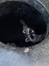 - A baby raccoon in a trash can near our field site in Forest Park.