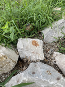 At the end of the week, we headed out to Tyson Research Center to track the three-toed box turtles and change the SD cards on the carnivore project trail cameras. It was an incredibly hot day, but we were able to locate all seven Tyson turtles and download their iButton data while fighting ticks and spider webs.