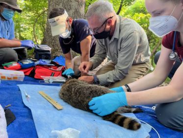 This week, we were able to collect data from three new raccoons and an opossum before releasing them back into the park! I was able to help with the anesthetic procedures and sample collection for all of the new LEC animals before processing them in the lab. One of the raccoons was also fitted with a radio telemetry collar to track his movements in Forest Park. It was incredible to be a part of, and I even got to listen to a raccoon’s heart and lungs.