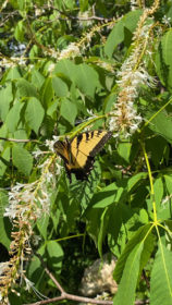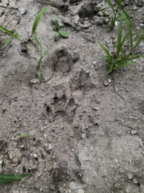 This week we started by tracking all of the study turtles in Forest Park. We were able to locate all eight of the study turtles and record their location using GPS. Two of the Forest Park turtles, Ainoa and Kennedy, had spent the past couple weeks away from their normal patches. This week, they both returned to their usual stomping grounds. While tracking the turtles, I found some tracks of a different kind that were left by a raccoon. I was also able to see an eastern tiger swallowtail butterfly that stood still just long enough for me to get a quick picture. Overall, it was another successful day of turtle tracking!