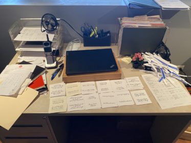 After I am done with what I am supposed to do, my fellow employees start delegating some of their tasks, and I am happy to oblige. However, the first half of this week was a bit different. Curate and Avery are two websites that I was taught how to navigate and complete projects on. Curate is a website the company uses to create wedding proposals for their clients, and Avery is what we use to create table tents. First, I have to type the options from our company menu that the clients selected onto the wedding templates in Avery. After printing what I typed, I carefully have to separate four different parts of the paper and then organize them (in the picture above) before delivering the product to the on-site team.